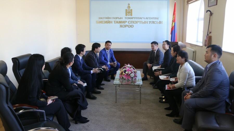 Засгийн газрын тохируулагч агентлаг-Биеийн тамир, Спортын улсын хороо Монголын Олон улсын ба үндэсний Спортын арбитр, Японы Олон улсын маргаан шийдвэрлэх төв, Японы Спортын Арбитрын Агентлаг гурвалсан уулзалт хийлээ. Уулзалтаар МОУҮСА болон Засгийн газрын тохируулагч агентлаг-Биеийн тамир, Спортын улсын хорооны хамтын ажиллагааны тухай Японы Спортын Арбитрын Агентлагийн төлөөлөгчдөд танилцуулж. Допингийн эсрэг үндэсний дүрэм цаашдын хамтын ажиллагааны талаар хэлэлцлээ. Уулзалтад: МОУҮСАрбитрын Ерөнхийлөгч Г.Батзаяа, Ажлын албаны дарга Ч.Дарьсүрэн, Нарийн бичгийн дарга Г.Мишээлт, Нарийн бичгийн дарга А.Удвал, Японы Спортын Арбитрын Агентлагийг төлөөлж Японы Олон улсын Маргаан шийдвэрлэх төвийн Ерөнхий нарийн бичгийн дарга, Японы Спортын Арбитрын Агентлагийн арбитрч, Спортын арбитрын шүүхийн арбитрч Ёшихиса Хаякава, Японы Олон улсын Маргаан шийдвэрлэх төвийн Дэд нарийн бичгийн дарга, Японы Спортын Арбитрын Агентлагийн мэргэжилтэн Казүшигэ Огава, Японы Олон улсын Маргаан шийдвэрлэх төвийн Дэд нарийн бичгийн дарга, Японы Спортын Арбитрын Агентлагийн хэрэг хариуцсан менежер Шоичи Сүгияма. Засгийн газрын тохируулагч агентлаг-Биеийн тамир, Спортын улсын хорооны даргын үүргийг түр орлон гүйцэтгэгч О.Баттулга Спортын бодлогын хэрэгжилтийн хэлтсийн дарга Б.Нямсүрэн Үндэсний шигшээ багийн бодлогын хэрэгжилтийн хэлтсийн дарга Э.Билэгт Гадаад харилцаа, мэдээлэл технологийн хэлтсийн дарга Н.Оюунбат Гадаад харилцаа, мэдээлэл технологийн хэлтсийн мэргэжилтэн Э.Энхсоёл нар оролцлоо.