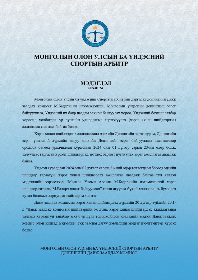 Допингийн арбитрчдийн нэрсийн жагсаалт