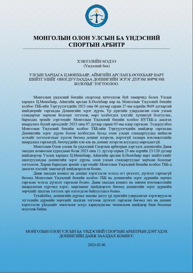 Допингийн арбитрчдийн нэрсийн жагсаалт