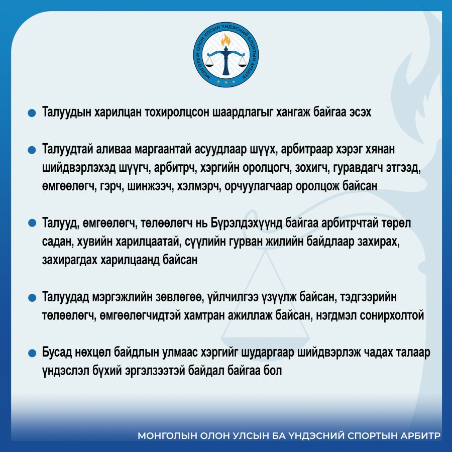 СПОРТЫН АРБИТРЫН МАРГААН ШИЙДВЭРЛЭХ АЖИЛЛАГАА